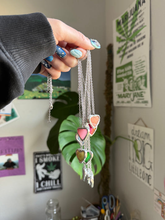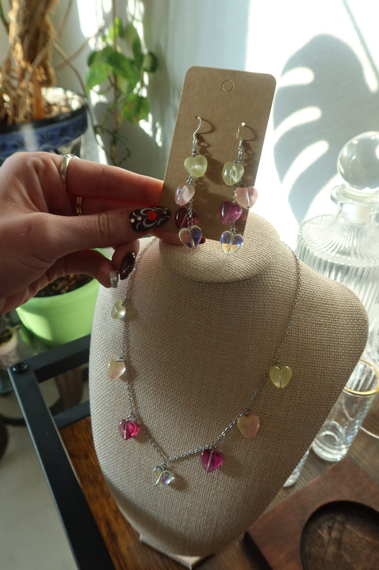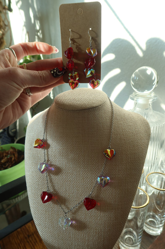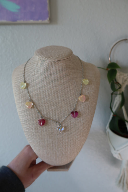Chrome Glass Hearts Necklace 16in - Cupid's Collection