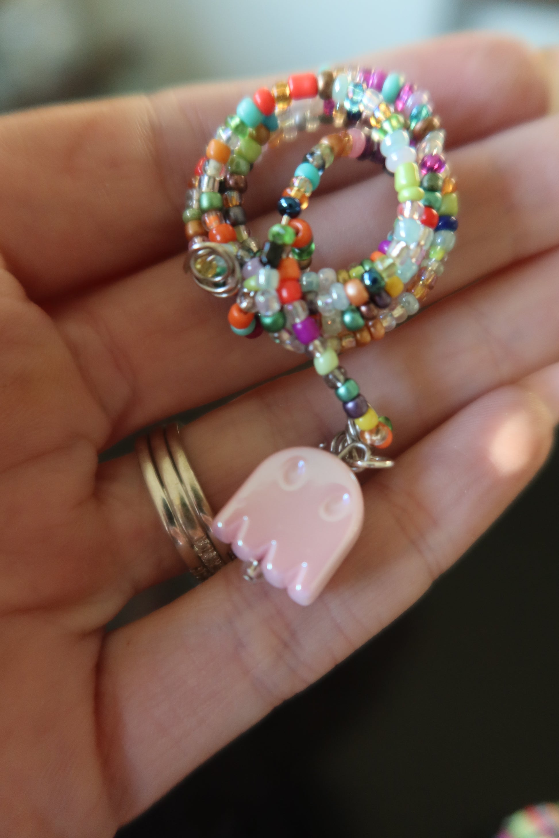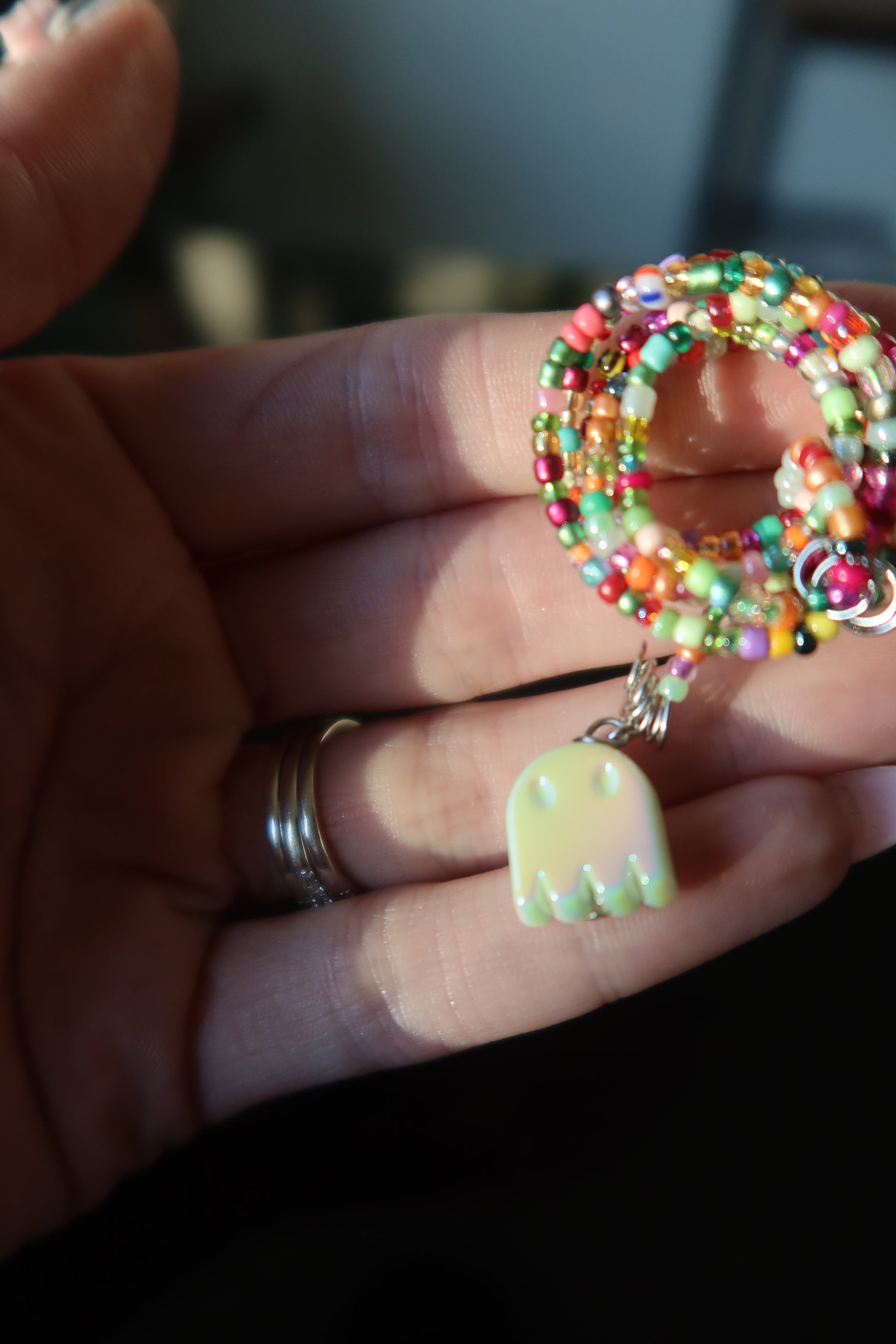 Add a little ghostly glow to your plants with our Ghost Charm Plant Wraps from the Spooky Collection. Each wrap is handcrafted with colorful glass seed beads and finished with a playful resin ghost charm that brings just the right mix of spooky and sweet to your space.