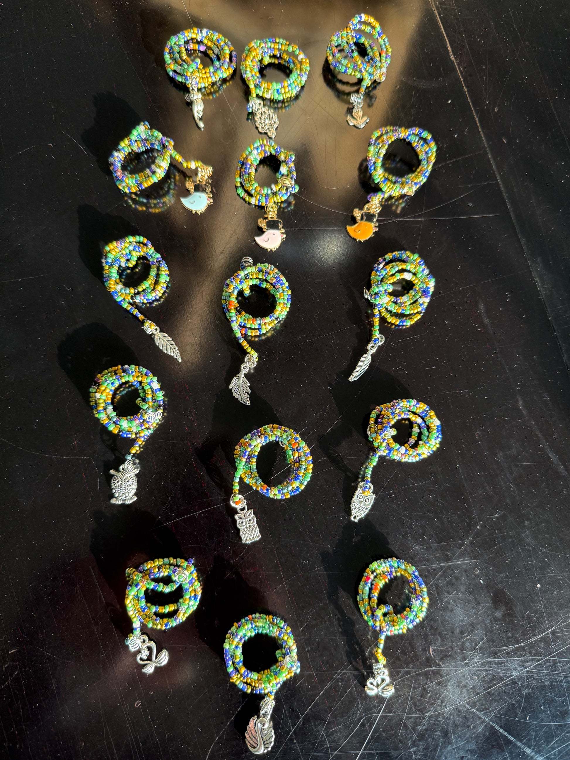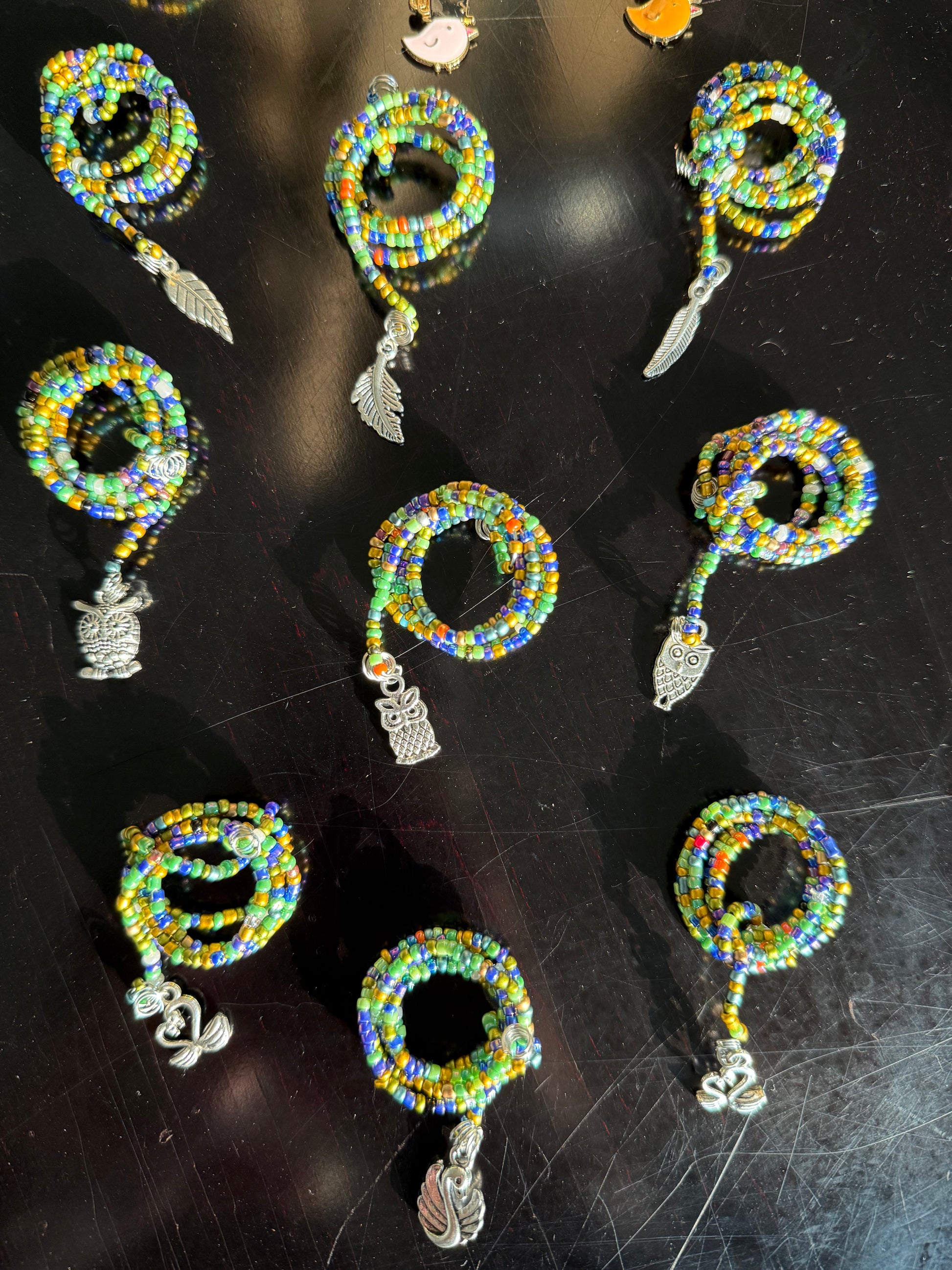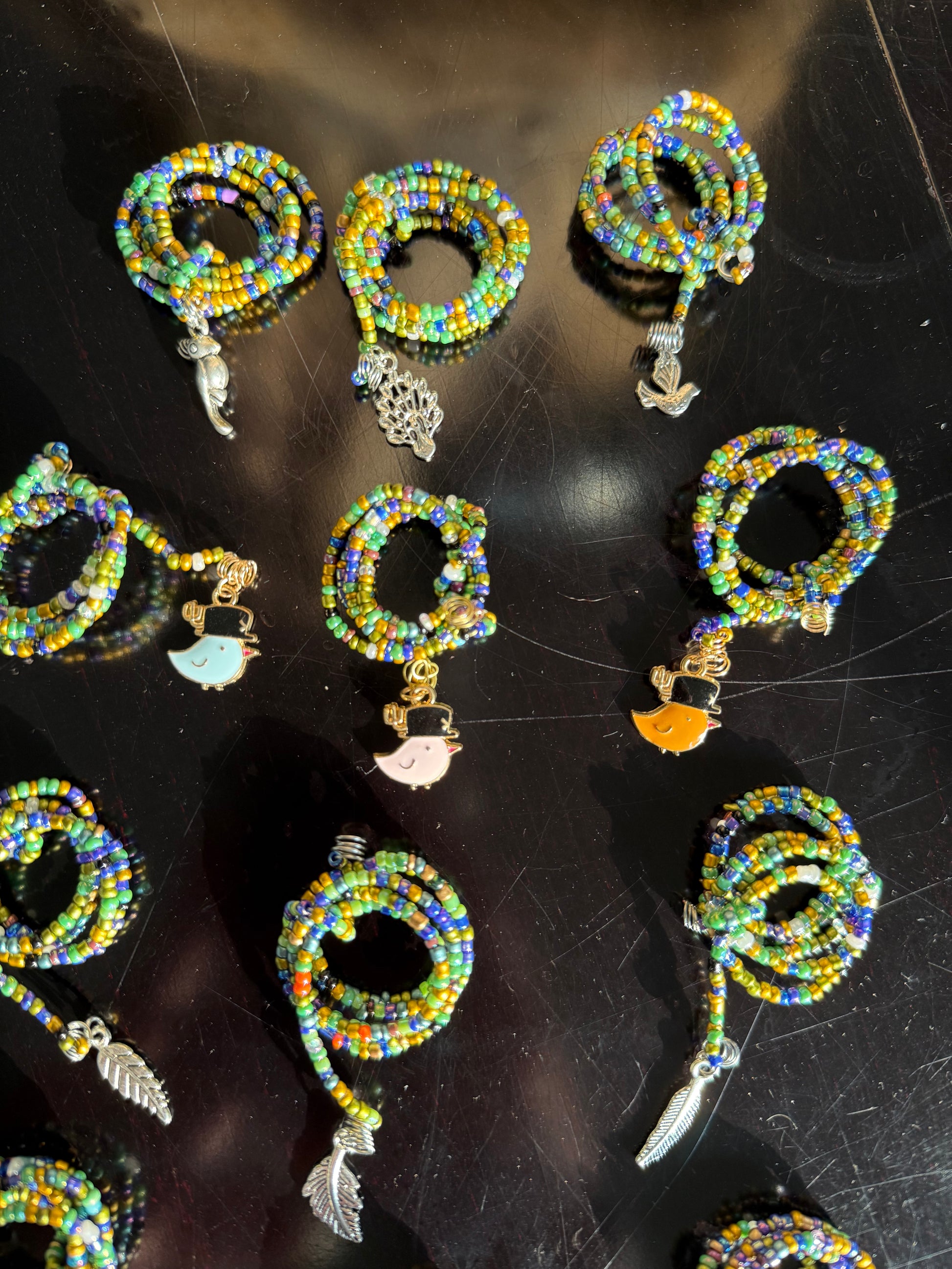 Handmade with stainless steel wire and colorful glass seed beads