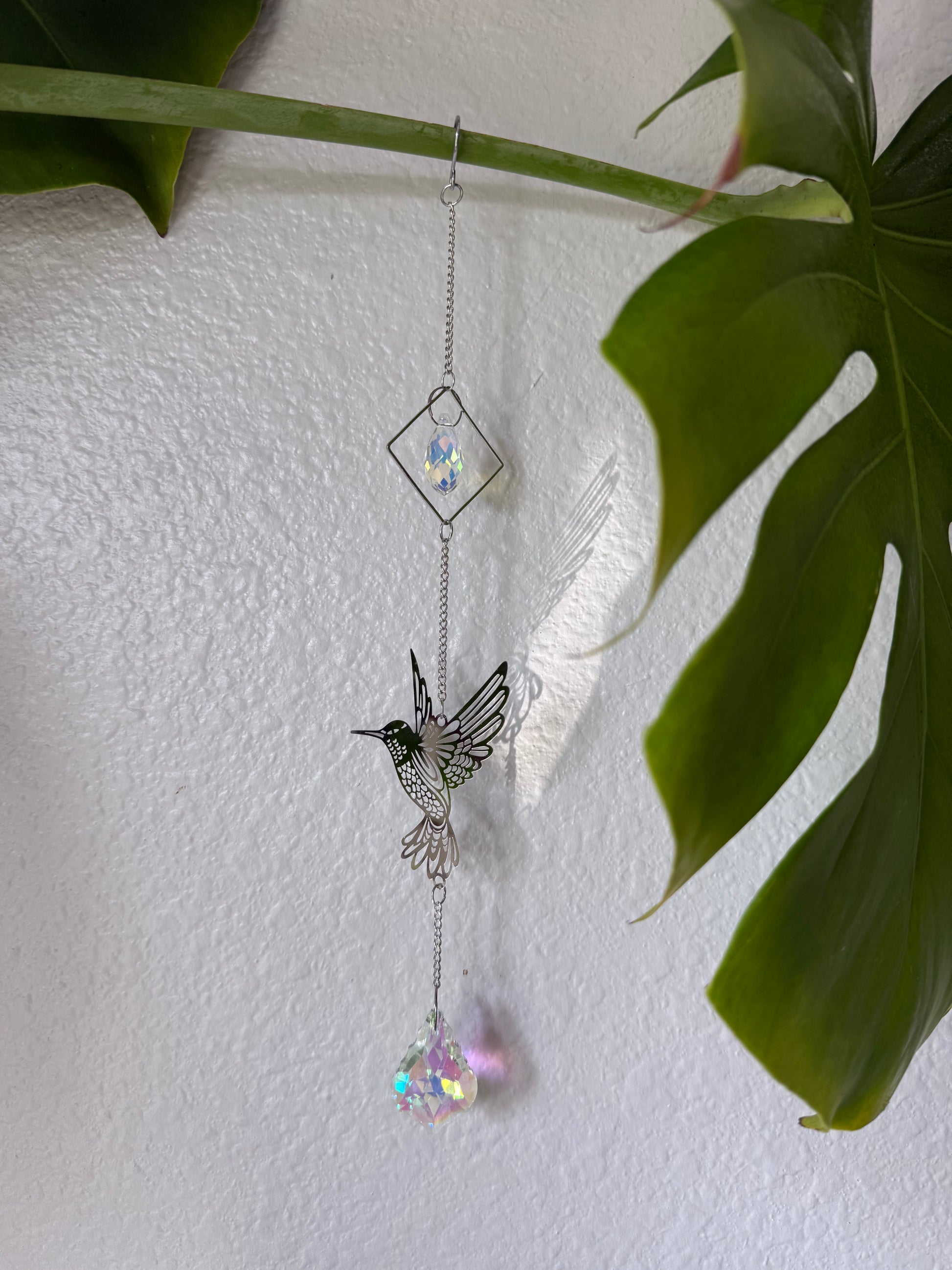 Our Nectar Light Suncatcher brings a burst of vibrant color and joy into your home. Featuring a silver hummingbird charm surrounded by radiant glass and acrylic beads, it reflects sunlight in dazzling, energetic patterns.