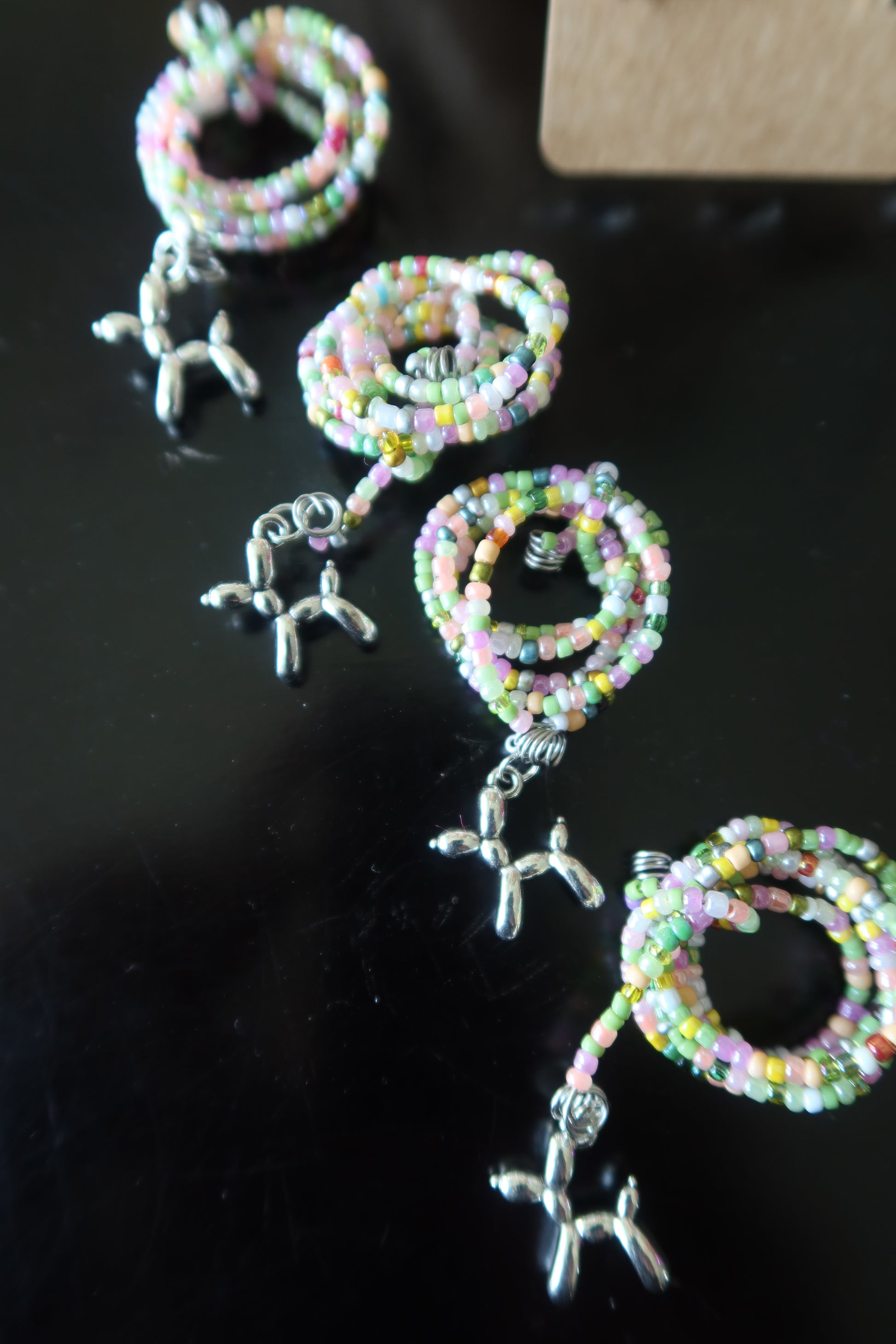 Add a touch of whimsy and color to your plants with this handmade silver balloon dog plant wrap. Crafted with durable 20-inch stainless steel wire, this wrap is designed to be both functional and stylish. Adorned with vibrant pink and green glass seed beads, it brings a burst of playful charm to any houseplant. The centerpiece of this wrap is the adorable silver balloon dog charm, adding a fun, lighthearted flair to your greenery. Perfect for accenting your plants or giving as a gift to a fellow plant lover, this wrap will bring joy and personality to your plant collection.