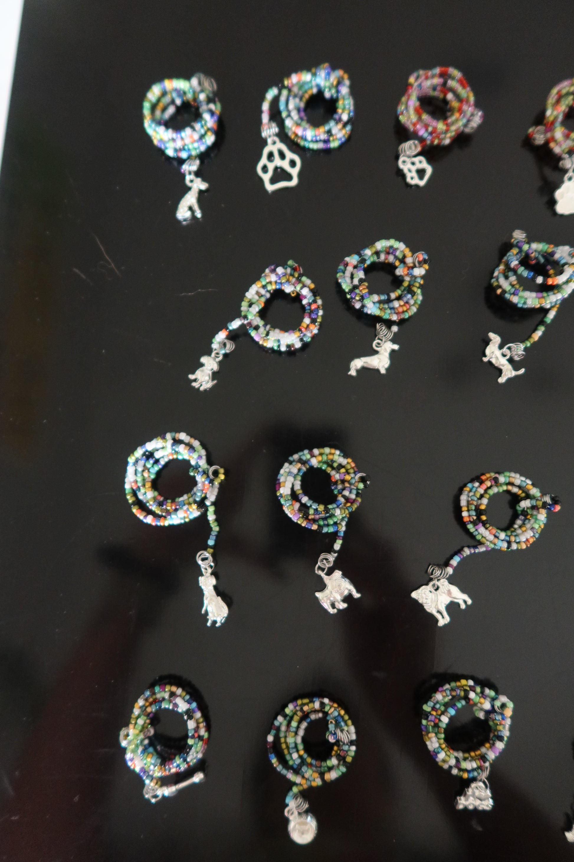 There are 20 unique designs, each featuring a different dog or dog-related charm — from paws and bones to specific breeds and playful pups. Whether you're a dog mom, dog dad, or just a canine enthusiast, there's a wrap here that will bark your name.