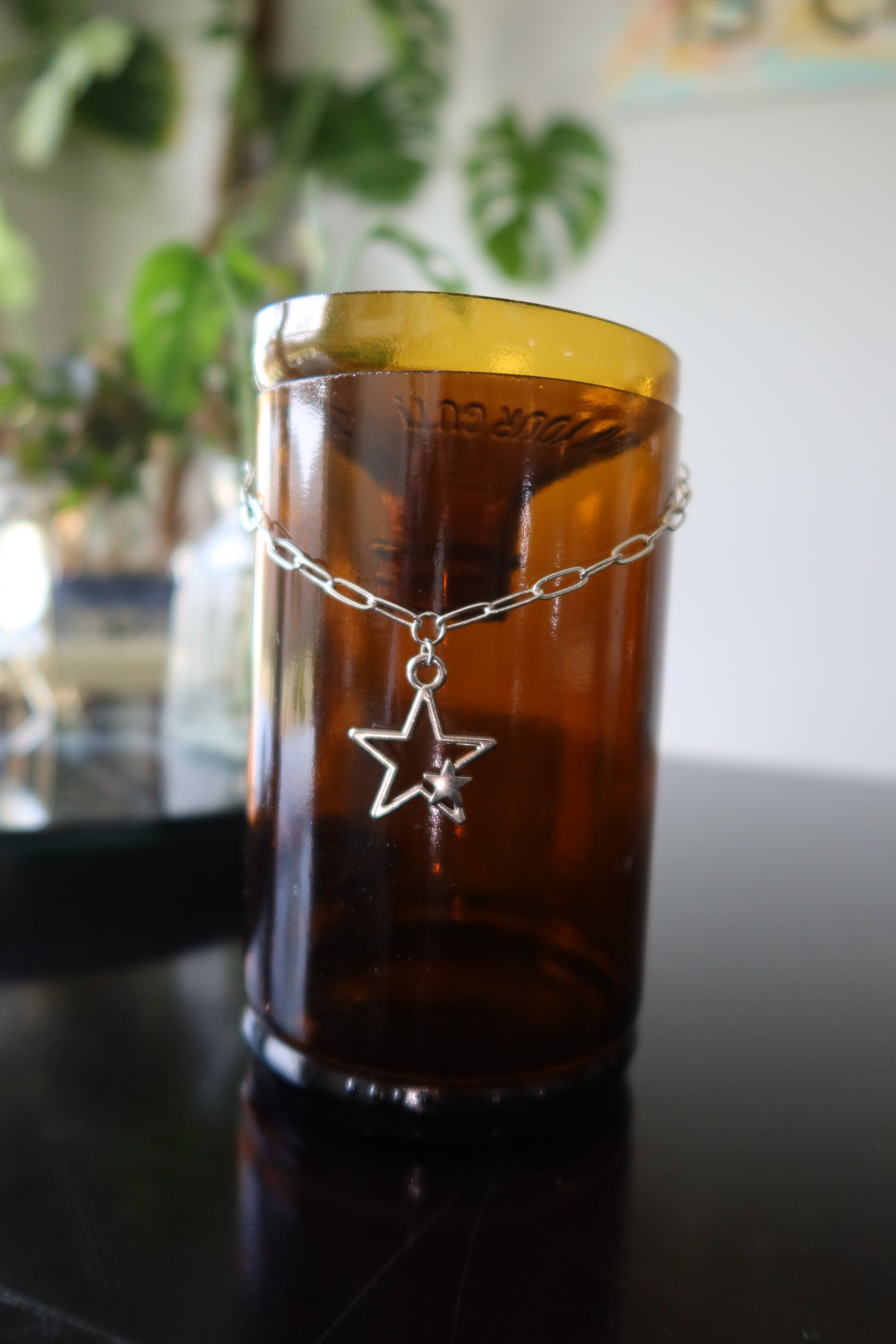 Adding a touch of elegance, this vase features a delicate gold chain charm, adorned with stainless steel chain with star charms for a fresh, botanical aesthetic. Perfect for displaying on shelves, desks, or windowsills, this unique piece brings a blend of eco-friendly craftsmanship and natural beauty to your plant collection.