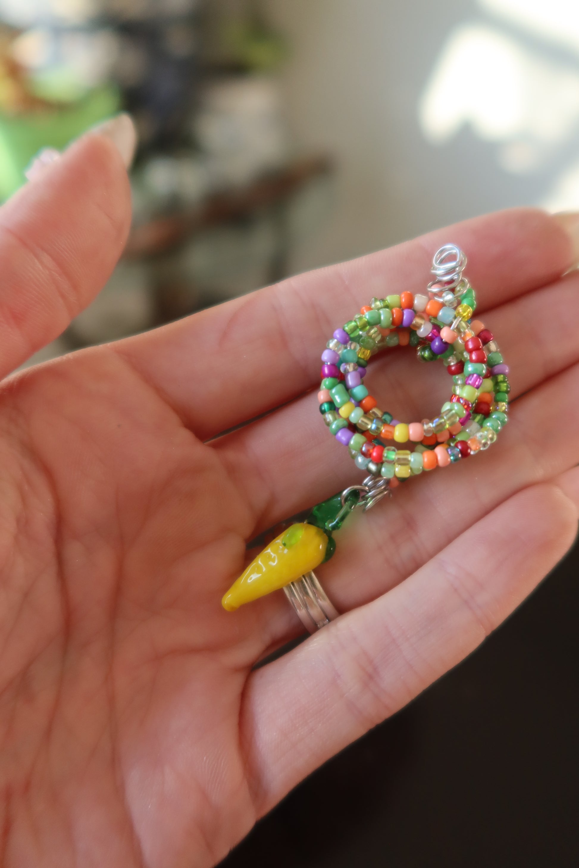 Bring a touch of garden-fresh charm to your plants with our handmade Veggie Plant Wraps from the Harvest Collection. Each wrap is carefully crafted with colorful glass seed beads and finished with a delicate glass vegetable charm, the perfect way to celebrate harvest season all year long.